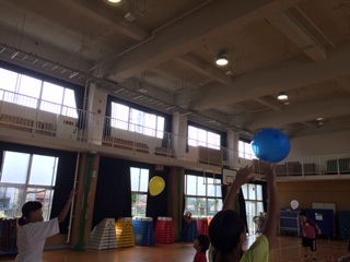今日のなかよしタイムは「風船ラリーゲームをしよう」でした。子どもたちは相手が風船を取りやすいように、名前を呼んでパスしたりと、とても楽しそうにゲームを楽しんでました。