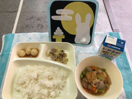 「鶏肉とさといもの煮もの」は、十五夜が「芋名月」と言われることや、十五夜にさといもを供える習慣があることから、さといもを使用してします。