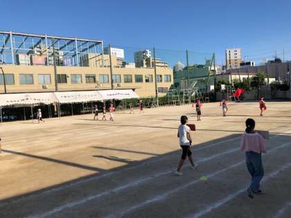 代表委員会、応援団団長・副団長、6年生の代表児童による入場行進の練習風景です。