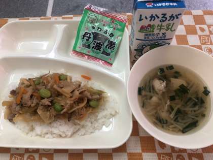 黒豆とは、表面の皮の色が黒い大豆のことです。今日の給食では、つぶの大きな「丹波黒大豆」という種類のものを使っています。
