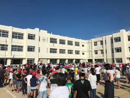 今日は久しぶりに第1グラウンドで児童集会を行いました。