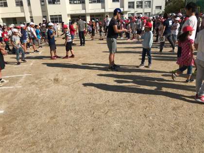 高学年の児童が低学年の児童に進む合図を出して手助けしてくれたおかげで、みんなで楽しむことができました。