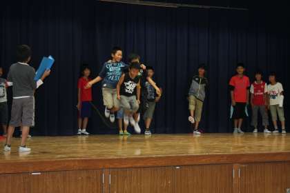 15分休憩のときには、全校で長縄や短縄をつかった運動を行いました。また、それぞれの学年でがんばりカードを用意し、運動委員会の5・6年生が検定をするという活動もしました。