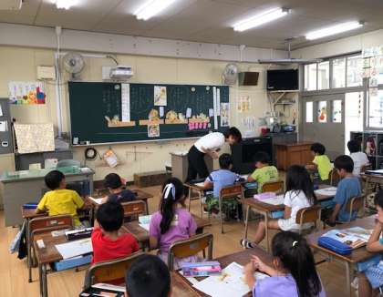 授業の最後では、困っている先生をみんなで助ける場面も見られました。親切にしているみんなの笑顔が輝いていました!