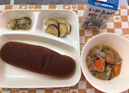 「焼きさつまいもの甘みつかけ」は、ホテルパンに入れて焼いたさつまいもに砂糖、塩、こいくちしょうゆで作った甘いみつをかけて仕上げています。