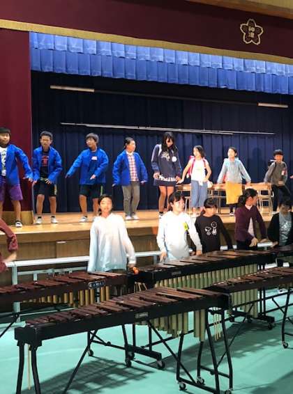 5年生の演目は、ミュージカル「神津 オブ ミュージック」です。歌にダンス、合奏と劇の中でいろいろな発表をします。