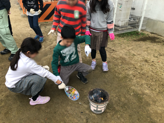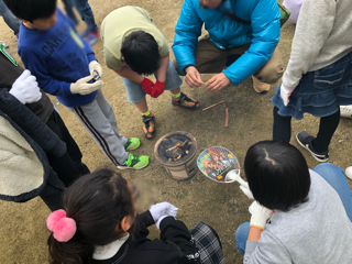 3年生は社会科で習った昔の暮らしを体験するために、七輪に火を起こす体験をしました。