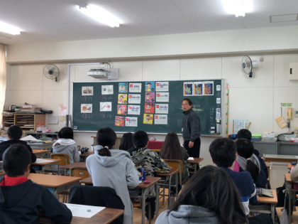 加島小学校の江見栄養教諭に来ていただき、2時間目6年1組、3時間目6年2組の栄養指導の授業です。