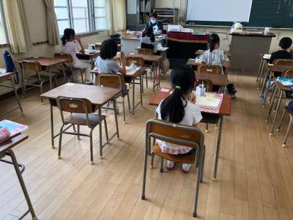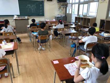 ソーシャルディスタンスを保ち、静かに給食をいただきます。