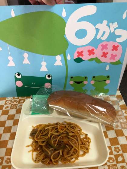 「スパゲッティミートソース」は、牛ひき肉、豚ひき肉を使い、小麦粉と綿実油をよくいためて作るブラウンルウで仕上げます。毎回児童に好評な献立です。