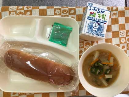「みそ汁」は、じゃがいも、たまねぎ、にんじん、青みにオクラを使用しています。