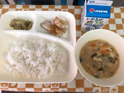 「鶏肉のおろしじょうゆかけ」は、鶏肉を料理酒、塩で下味をつけ、焼き物機で焼き、だいこんおろしで作ったタレをかけ、さっぱりと仕上げています。