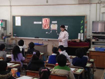 歯科衛生士の方に来ていただき、歯みがきの大切さについて教えてもらいました。