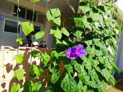 職員室前のアサガオがきれいな花を咲かせています。