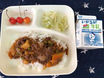 「さくらんぼ」は、甘さとすっぱさのバランスがよいくだものです。6月〜7月ごろが、たくさんとれておいしい季節です。給食では1年に1回、6月に登場します。
