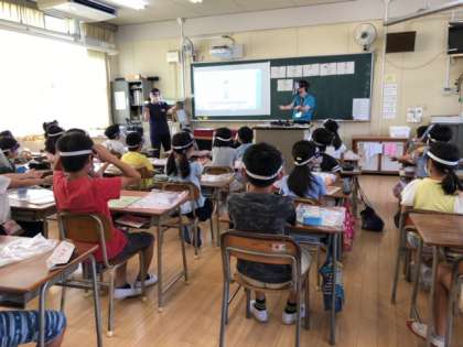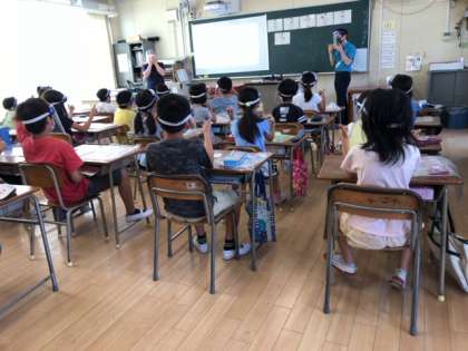3年1組でダニエル先生と中村先生が一緒に、音楽に合わせてダンスをしながら、英語の勉強を教えてくれます。