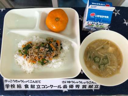 令和元年度学校給食コンクール最優秀賞に選ばれた献立です。中学生が考えました。