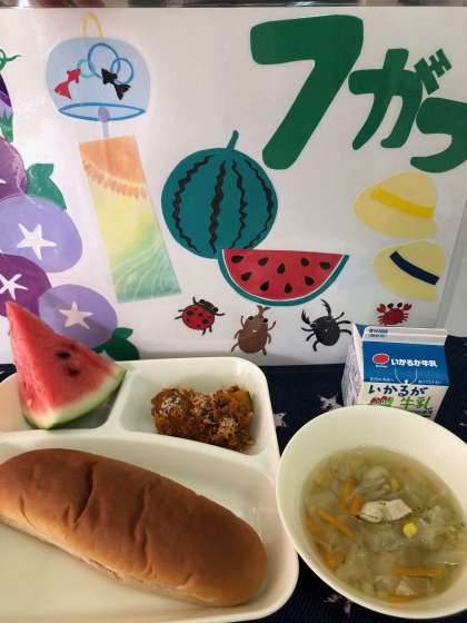 6個のすいかがとどきました。1つを64人分に切りわけています。