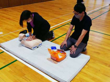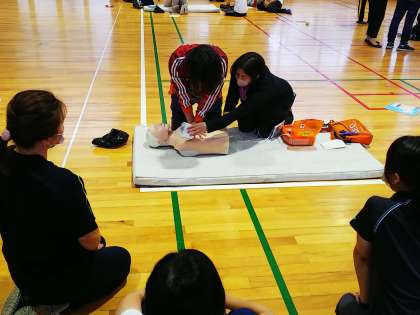 呼吸や心臓が止まった時に大切な「AED」の使い方を中心とした心肺蘇生法を学びました。