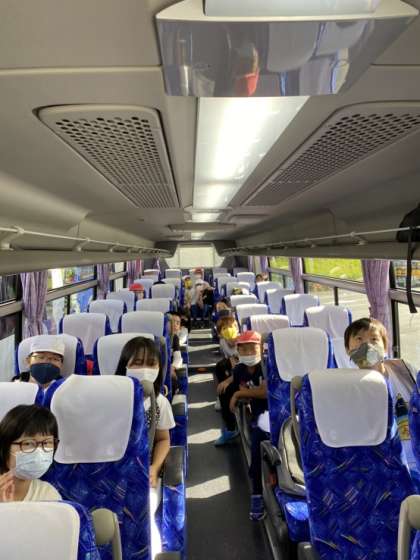 コロナ対策で、席を離して、音楽をききながら向かってます。