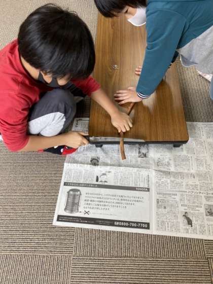 そのあとサンドペーパーで削り、自分だけの作品に仕上げます。