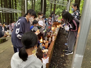 カートンドッグ 牛乳パックに火をつけます。