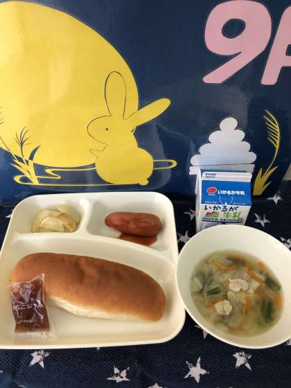 今日の給食では、ゆでたフランクフルトにケチャップ、デミグラスソース、ウスターソースを合わせ、でん粉でとろみをつけたソースをかけています。