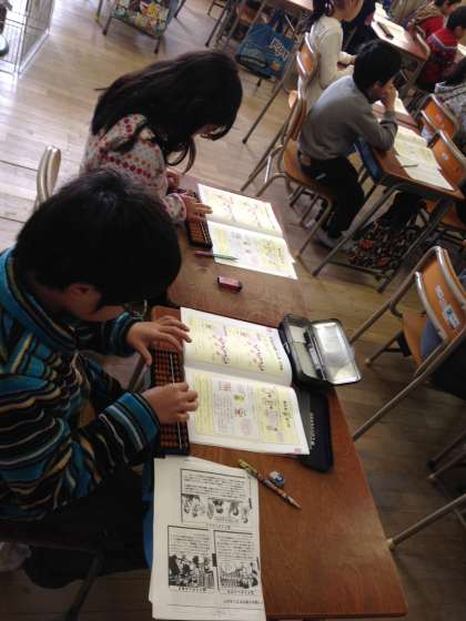大阪珠算協会の方に来ていただいて、そろばんを学習しました。