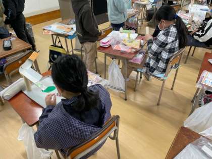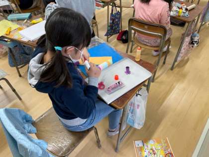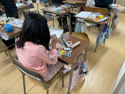 図画工作科では、ビー玉を転がすコースを組み立てています。