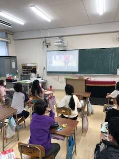 講堂で表彰式を行い、各学級でTeams中継を見ました。