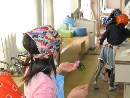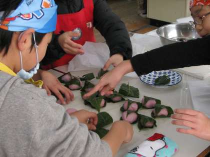 毎年恒例になっている、3年生の和菓子づくり体験。
