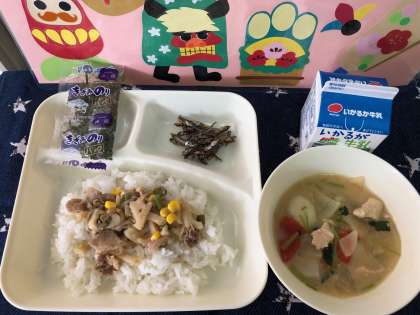 正月には新しい年のはじまりを祝い「今年も健康に過ごせますように」と願って食べる料理がたくさんあります。今日の給食には「ぞう煮」と「ごまめ」がでます。