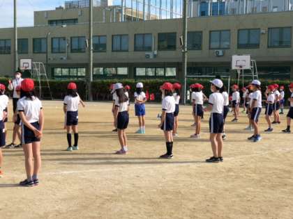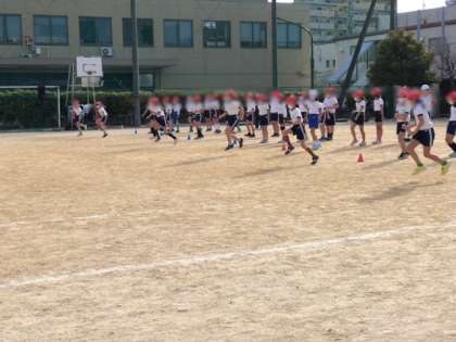走る時の4つのポイント(腕の振り方・足の使い方・走る時の目線・スタートの姿勢)を聞いて、一生懸命走っていました。授業の後半では、大きく前後に腕を振れている子や、足をしっかり上げている子がたくさんいました。今回、教えていただいたことをこれからの体育の学習や、休み時間などに生かしていきたいと思います。