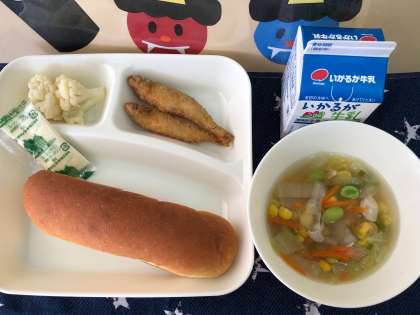 今日の「わかさぎフライ」はかみごたえがあります。しっかりとよくかんで食べましょう。