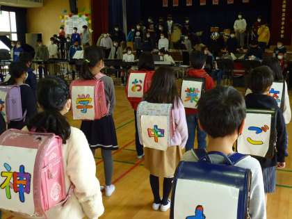 ランドセルの後ろにはメッセージが1文字ずつ書かれていました。