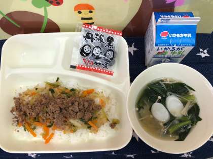 今日の給食では、ひき肉、きゅうり、にんじん、切り干しだいこんを具材としてつかっています。
