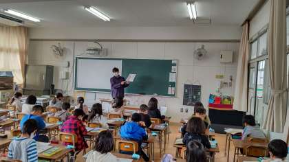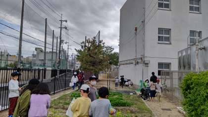 春の生き物探しで学習園や校庭を散策し、だんごむしやホトケノザキャベツについていたアオムシを見つけました。