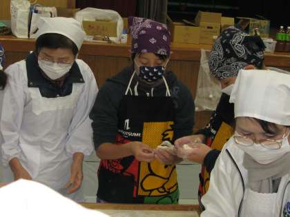 みんな楽しくもちをついた後は、おいしくいただくだけでなく、おみやげのおもちもいただきました。