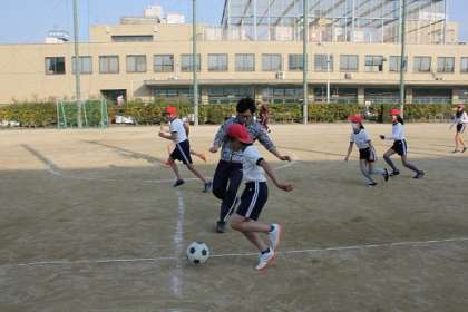 競技種目は、「ドッジボール」「サッカー」「バスケットボール」の3つで、6年生VS教職員という形で行われました。