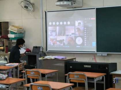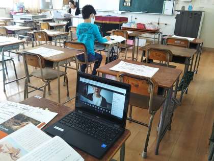 1時間目に双方向通信Teams(チームズ)を使ってのオンライン接続テストを行いました。