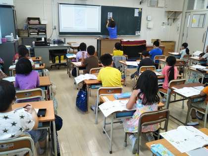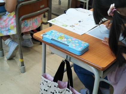 1年生の授業の様子です。緊急事態宣言による特別時間割もありましたが、今週からは通常授業。少しずつ1年生も小学校の授業に慣れてきたようです。