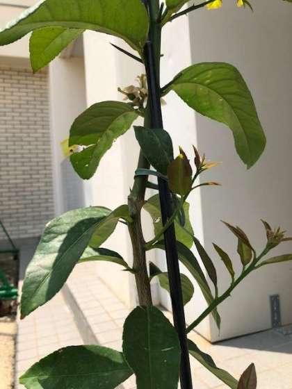 暑くなってきて、元気な脇芽がたくさん出てきました。花も咲きレモンの実がなりそうです。楽しみですね。