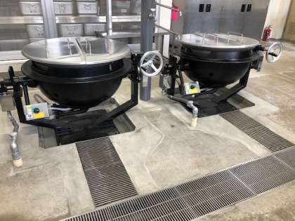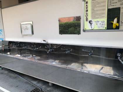 手洗い場も配膳棚もピカピカです。長く使えるように、蛇口などやさしく使いましょう。