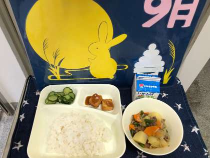 今日の給食には、ごはん、じゃがいも、さとう、油が使われています。