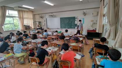 社会の学習ではスーパーマーケットに売っている物がどこから来ているのかを学習しました。日本各地から食品や商品が届いていることに驚きの表情でした。