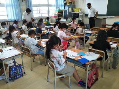 令和4年度新入生のための学校公開がおこなわれ、1年生の図工と英語の授業を見学していただきました。