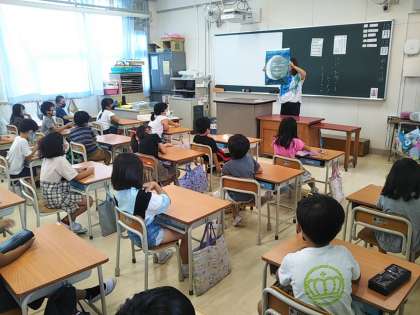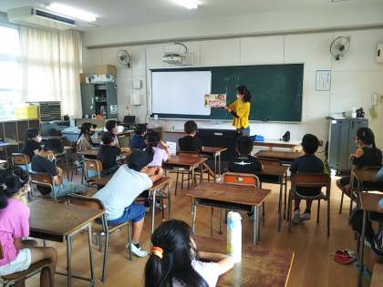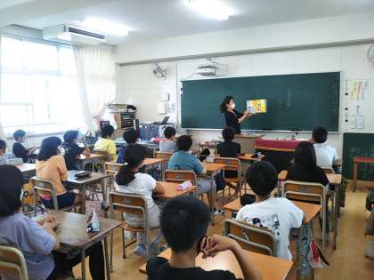本校では、毎週水曜日の朝の時間に「絵本のくに」のみなさんが絵本の読み聞かせをしに来てくださいます。