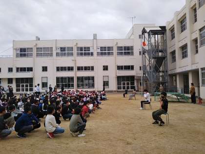 今日の朝会で、運動委員会と健康委員会の人が「かみつ体操」(いすバージョン)を全校児童の前で紹介してくれました。音楽に合わせて実際に体操をしてくれました。とても分かりやすかったです。ありがとう。