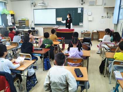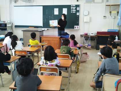 今朝は「絵本のくに」のみなさんによる絵本の読み聞かせがありました。