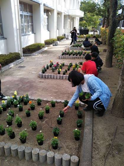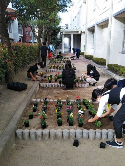 飼育栽培委員会の人たちが花壇に花を植えてくれています。